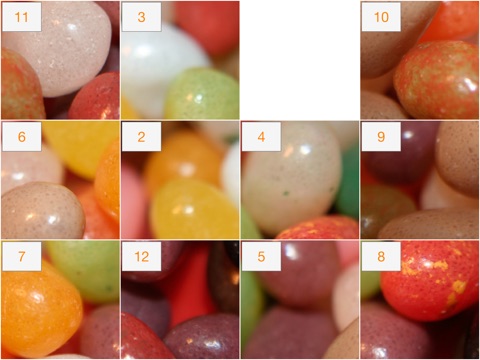 Choose from 5 different puzzle sizes. 3x3, 4x3, 4x4, 5x4 and 6x5.