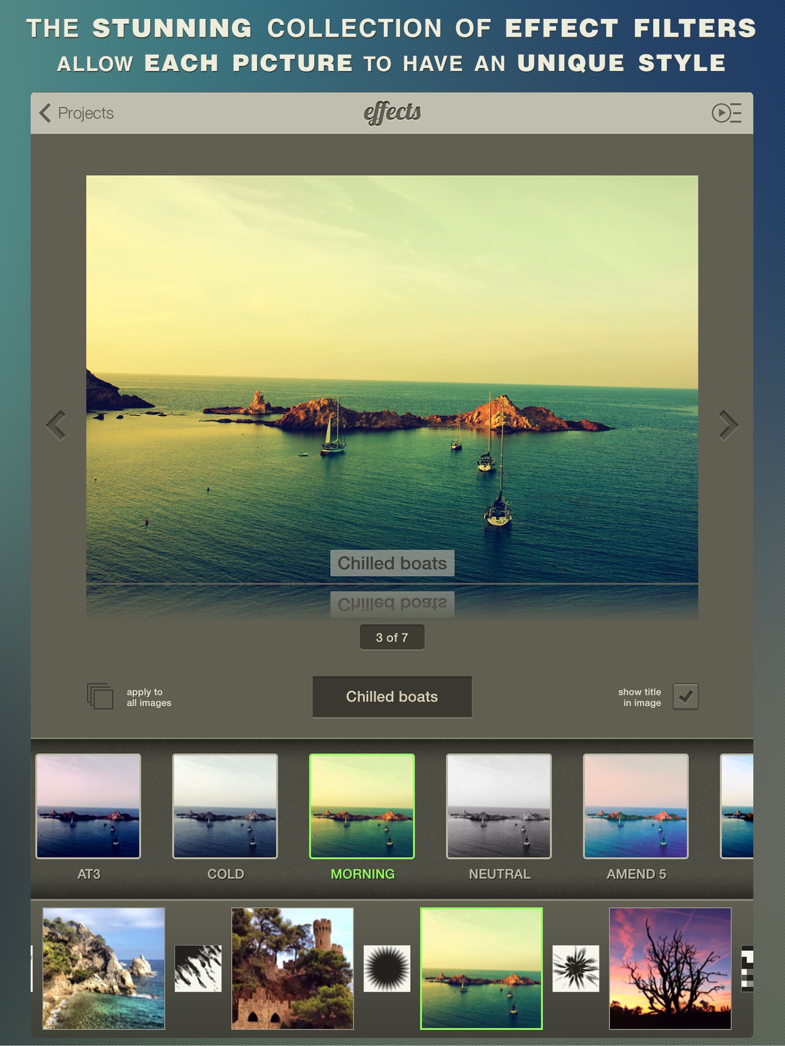 • Stunning collection of visual effects that will give an unique style to your photos.