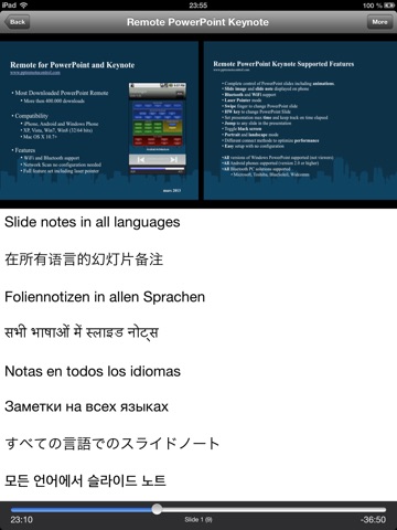 SlideMe Remote is a free powerpoint and keynote presenter. Enjoy this feature rich and easy to use app for Windows and Mac OS X.