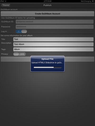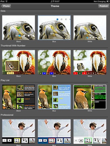 There are many built-in splendid templates in the app, and you can publish the slideshow to our free go2album hosting service and share with your family and friends. Your masterpiece can be viewed on PC, Mac, iPod Touch, iPhone and iPad whenever and wherever.