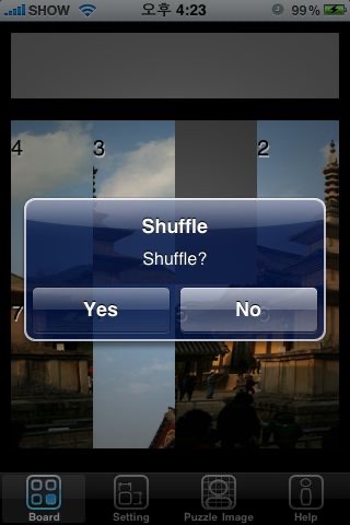 Dialog box is shown when you shake the iPhone(or iPod touch).If you want to play new game. "Yes" choose.