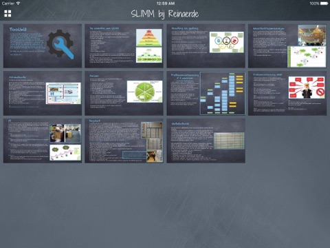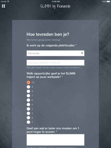 SLIMM is een verbeterprogramma van Reinaerde. Middels de app kunnen verbeteringen en tevredenheid gemeten worden. Aan medewerkers en cliënten die meedoen met SLIMM wordt gevraagd periodiek de app te gebruiken voor hun vorderingen.