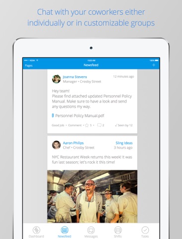 - Chat with coworkers in real time: Sling’s powerful communication features help employees to stay informed wherever they are and never skip a beat.