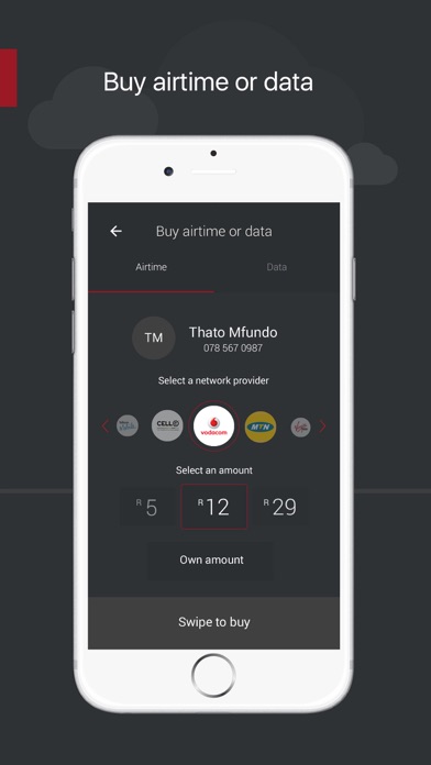 With Sling Pay you will be able to send money, electricity, airtime or data to anyone on your contact list or a cell phone number. Just tap and send.