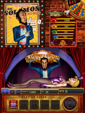 Players can win up to 100 credits times the bet per line in the Levitation Illusion. The magician levitates his assistant to award the credit value. He can finish the bonus in this simple animation or in 3 others in which a bonus value is added to the credits.