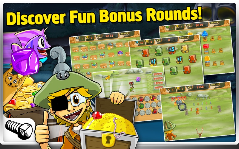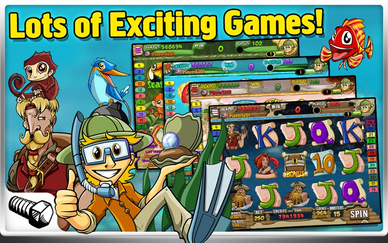 Play four different amazing games! Sail the Seven Seas in Pirate Slots, scout wild animals in the savannah in Safari Slots, journey through the undergrowth in Jungle Slots, and scuba with the colorful critters in Under the Sea Slots!