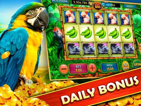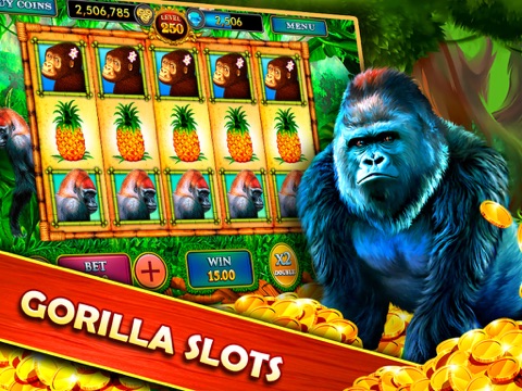 Explore brand new slot machines online - Lucky Gorilla King Vegas Fun Slot Machines! Come to the Jungle Mountains of Africa and be the first one who win the gigantic jackpot of Gorilla King. The company of friendly monkeys will help you on yours slot machines adventure. Not everyone gets a chance to get to the hot Africa and come out with a million points in hand!