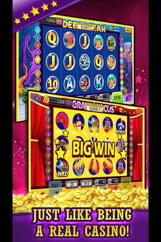Win tons of coins and become a high roller in Slots. Feeling lucky? Spin the bonus wheel in our Vegas style video gambling slot and win a great fortune. Double down your chips and see if you can win a 777 bonus jackpot slot prize! Keep building your casino fortune in Slots, spin, win and join the slot machine party!