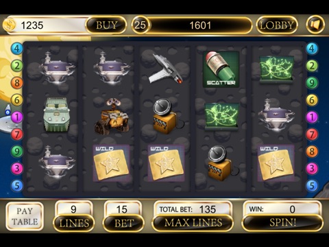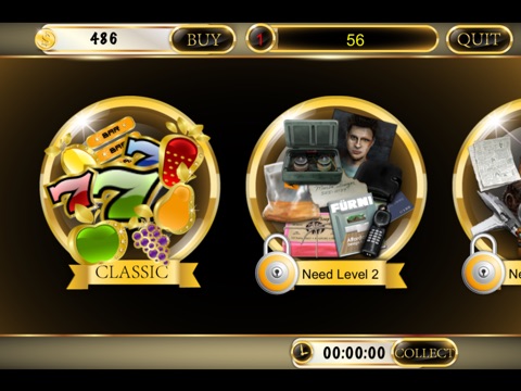 This is a 5 reel, multiple-line slot game.You can play many sences include classic slot machine.The other sences will unlock when you level-up.
