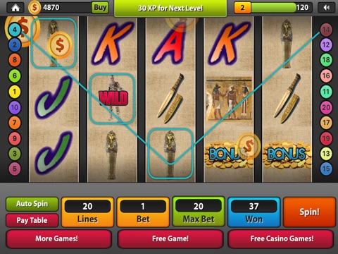 Earn top coin payouts with maximum bets and multiline gameplay. Log Into Game Center to see how well you rank against others! In App purchase allows for continued growth on payouts.
