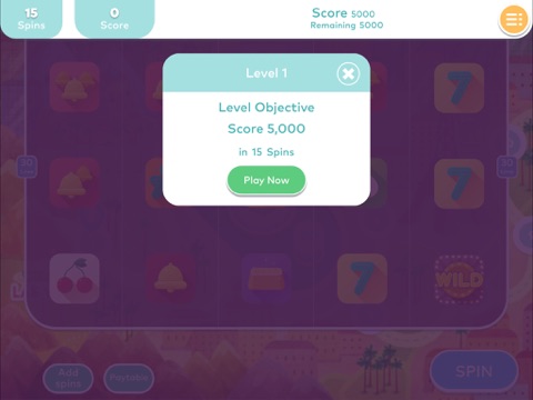 There are 50 levels in total with a variety of objectives including finding slot symbols, winning multiple spins in a row, winning with specific slot lines and more! Each level has a set number of spins but dont worry, unlock our bonus rounds and spin the wheel for additional slot spins!