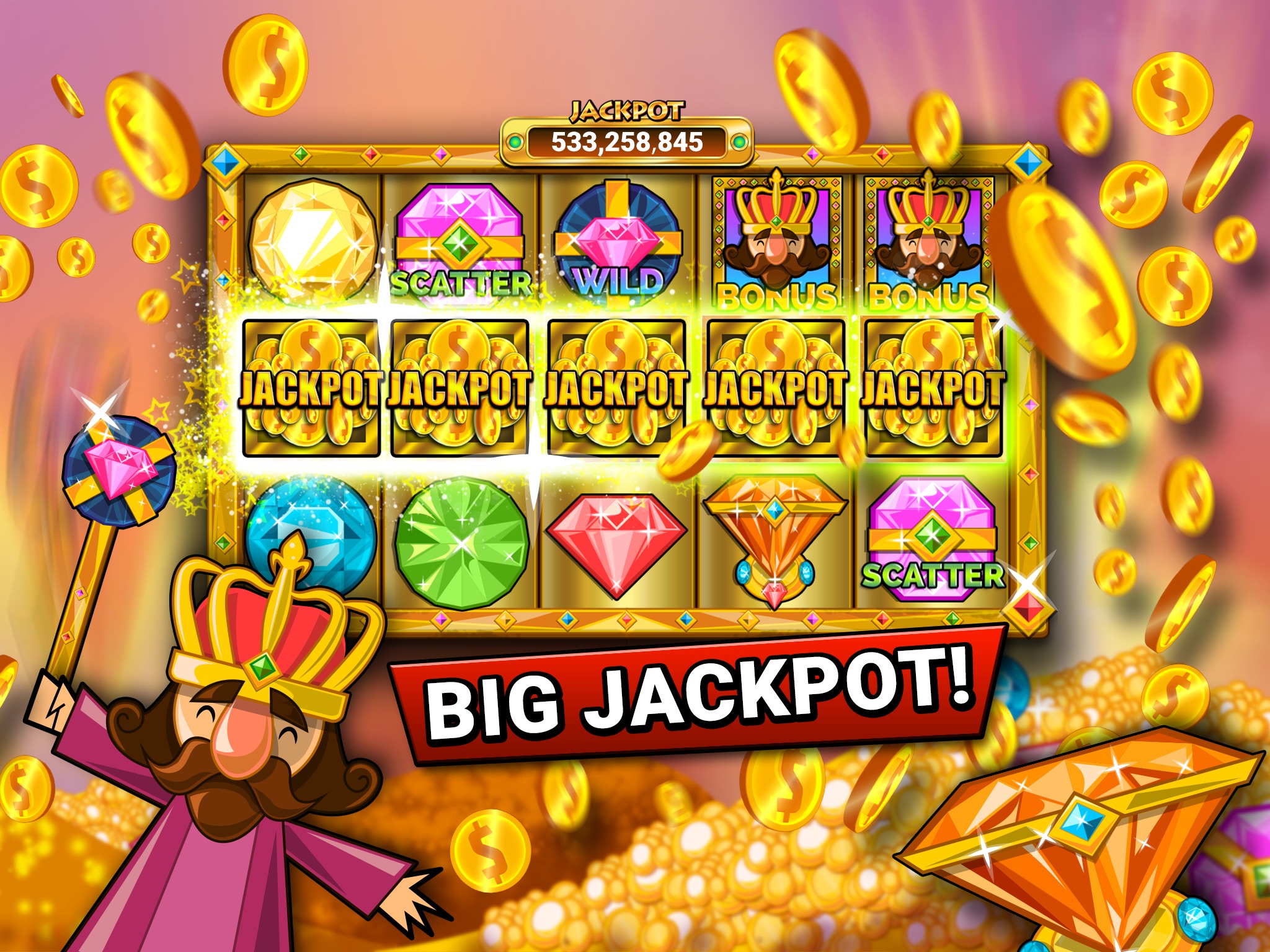 • 100% FREE slots with bonus and exciting mini games (magical chests, sloth race and more).