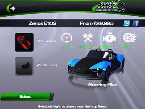 This version of SlotZ Racer is an exclusive demo of the awesome new Zenos E10 sports car and its extreme turbocharged E10S big brother.