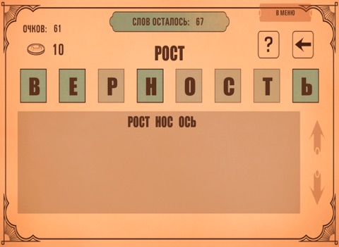 Отгадывайте слова, получайте за них очки, открывайте новые уровни и новые слова!