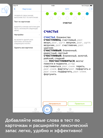 Бесполезная трата денег: словарь скудный и ограниченный. Например, слова "назидание, назидательность" отсутствуют вовсе, а у слова "часть" всего один синоним - доля. Очень жаль, что не нашел словаря Ильи Снакина, который был установлен на предыдущем айфоне. Ни в коем случае не тратье деньги.
