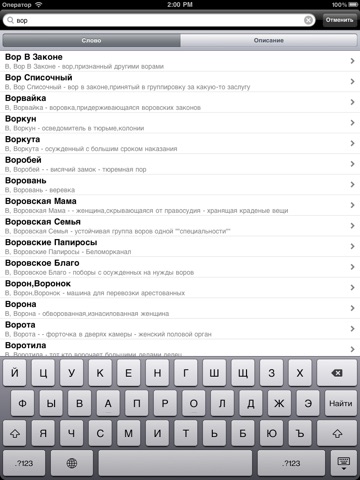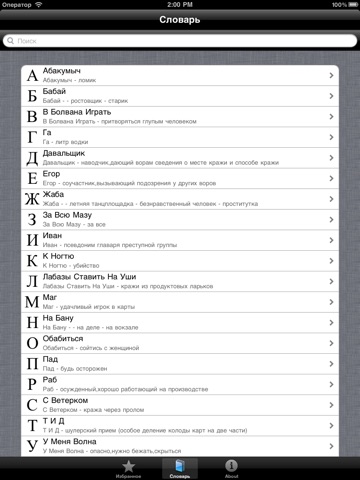 Данное приложение представляет собой словарь воровского жаргона.