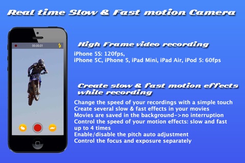 Record amazing slow and fast motion videos in real time with Slow Camera. Just tap and hold the slow, or fast, motion button while recording videos to create an ultra-smooth slow, or fast, motion capture. Import videos from your camera roll, and edit them with some slow and fast motion sequences.