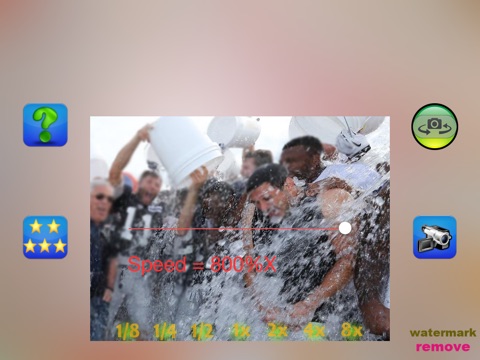 Record amazing slow motion (or fast motion) videos in real-time. Tap "record button" to start and "done" to stop record. during record ,change slider (or tap button) of speed to set different speed of video in any time. Support synchronous sound recording, different speed has different voice. Slow or fast voice is funny.