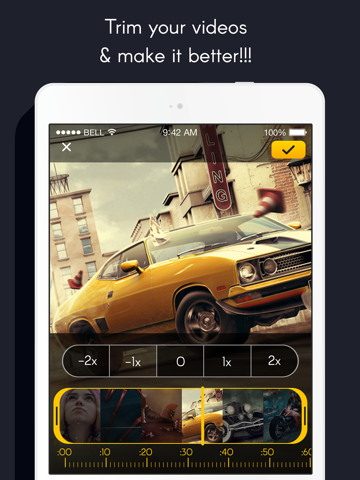 - Set the speed of your videos, review. You can set up to 2x slow or fast motion speeds.