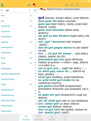 Umfangreiches gutes Wörterbuch, welches das Nachschlagen gegenüber einer Buchversion sehr erleichtert. Gute gram. Hinweise und Anwendungsbeispiele. Die Erstellung von eigenen Karteikarten durch Übernahme der gefundenen Vokablen ist sehr funktionell gestaltet. der Löschbutton in der Suchzeile ist etwas zu klein und dadurch schwer zu händeln. Nach Wechsel der Suchrichtung wird für die neue Suchrichtung ein neuer Karteikasten erstellt, was ich nicht hilfreich finde. Alles in Allem aber volle Punktzahl :-)) Der Preis ist gerechtfertigt!