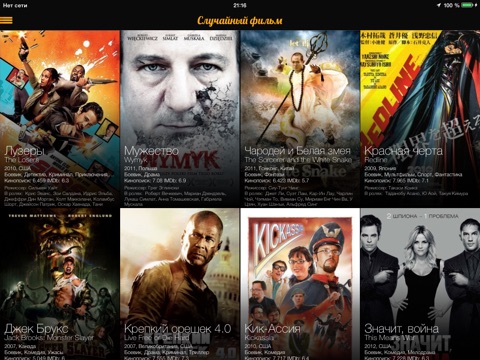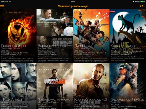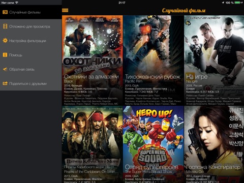 * смотрите фильмы прямо из приложения (просмотр и скачивание фильмов доступно только после авторизации в социальной сети ВКонтакте)