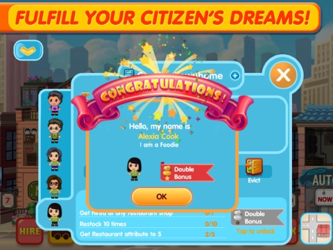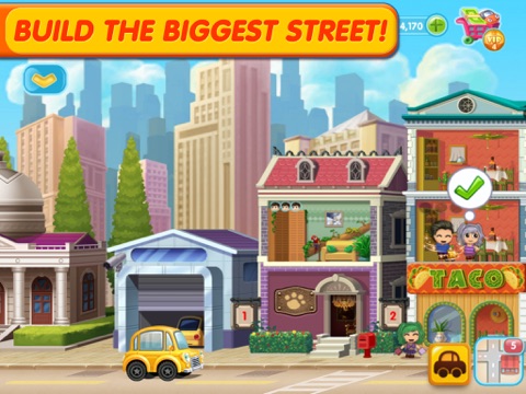 Welcome to Small City! As new mayor of the "Next Big Street" youve been invited to build the best restaurants, shops and townhomes around! Move in new citizens and give them cute costumes and pets. Finish their life goals to make them even happier! And visit your friends to help them out and check in on their progress! Get started today and get hooked on the cutest, most lively city in town!
