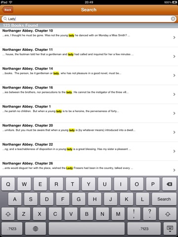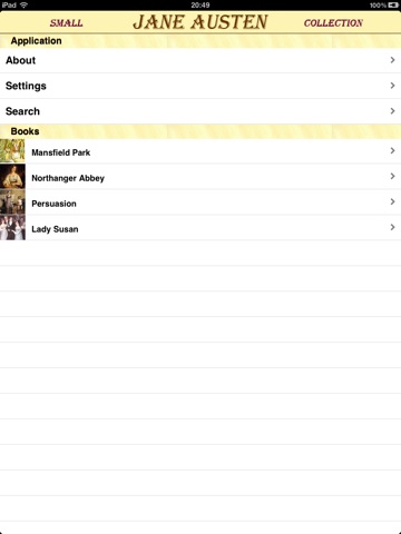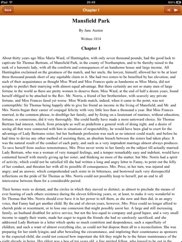 To simplify Small Collection of Jane Austen’s works the application supports full text search within all included texts. This is very useful when you need to find a quote or information on a particular subject but dont know where you should looking for.