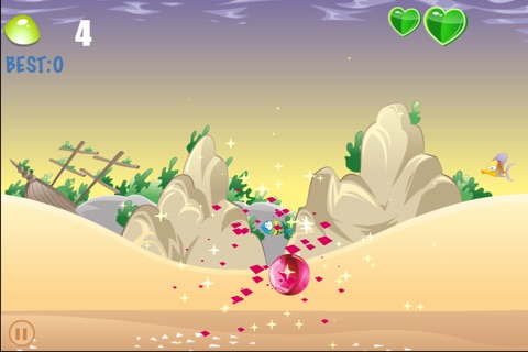 In the game, you control a ball, tilt mobile phone can allow the ball to roll, click on the screen can make the ball jump up, your purpose is to catch the gems before it fall on the ground, and avoiding falling stones and bricks at the same time.