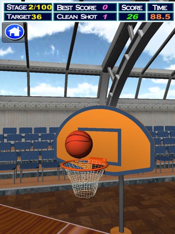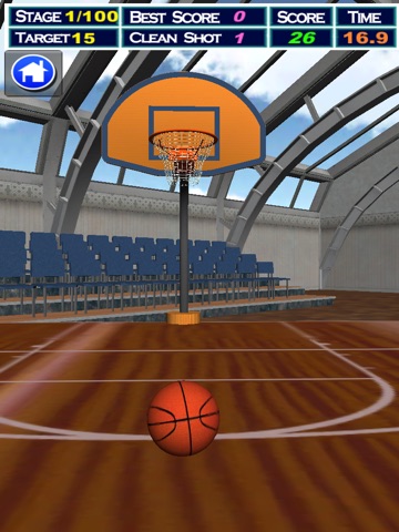 Exciting 3D Basketball shooting game with realistic physics! Shot from 5 different angles! Total 100 Stages! Flip the ball towards basketball hoop to score. Score the target point to move to the next stage in limited time.
