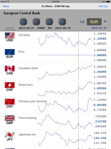 Another page shows a 5/90 day chart and exchange rates for all currencies.