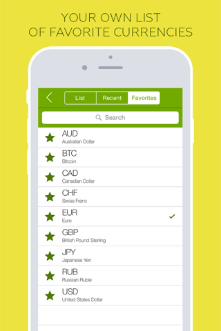 - Fast access to selected currency