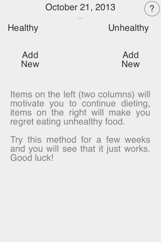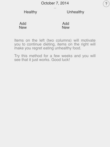 Easy. Motivating. No calorie counting. No measuring. By simply taking pictures of all meals and snacks, you can easily see what youve eaten as the day goes by. I also take a picture of my running shoes and add to my healthy column everyday I exercise.