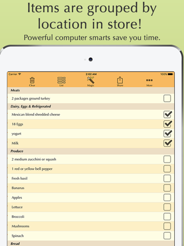 Share your list via text or email, complete with automatic grouping and checked items. Cool.