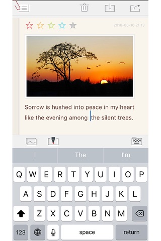 You can also share your notes on Twitter, Facebook or WeChat, Sina Weibo at any time. The elegant notepaper, finely crafted typography and carefully thought-out layouting make note-taking a pleasure. You can insert images to your notes.