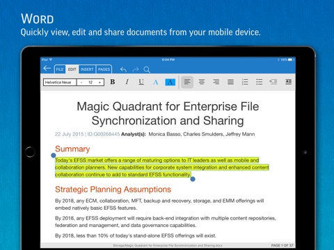 •View, edit, create, share, save & print MS Office documents quickly and securely