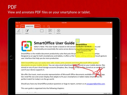 SmartOffice is an intuitive, easy-to-use document editing application with a workflow inspired by the familiar UI of a desktop Office document.