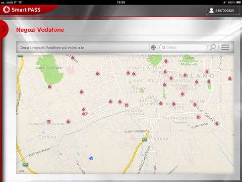 - Ricerca dei punti vendita Vodafone tramite mappa