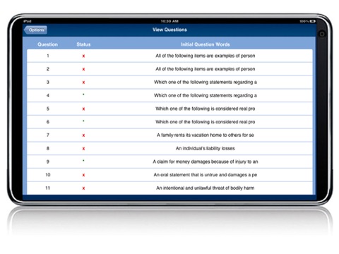 I love being able to do review questions anywhere without being online. My score on the review tests was in the same range as the actual test. Suggestions would be a bigger/variable font size and to be able to skip questions and return to unanswered. When reviewing afterward, it would be nice to filter by incorrect answers.