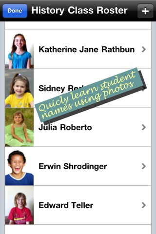 ● Tap the title bar to enter flash card mode in which the student photos are shown but the names are hidden.