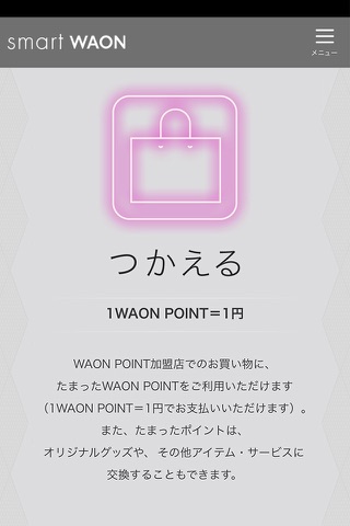 smart WAON(スマートワオン)は、現金、電子マネーWAONでのお買い物で"WAON POINT"がたまる・つかえる・わけあえるポイントサービスです。