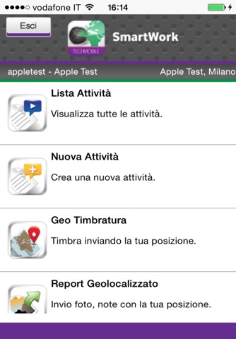 SmartWork is an application designed for workforce mobility. The app allows you not only to get the activities report directly on your smartphone or tablet, but also to geotag photos, get the list of activities to be performed and to geoclock in/out daily.