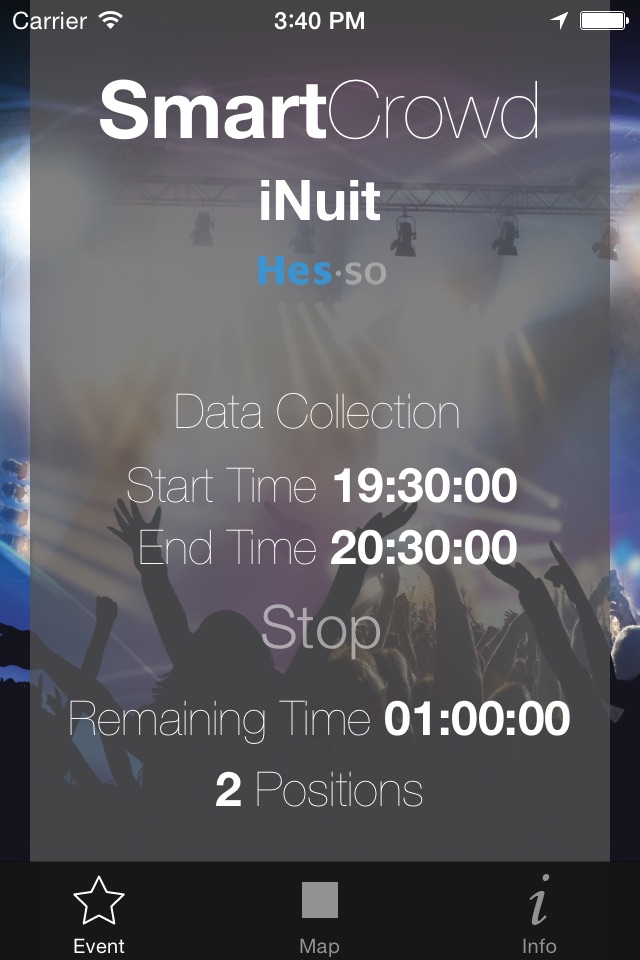 SmartCrowd is an application developed for a research project. It allows the user to safely enjoy large events such as festivals, live concerts, street parades, etc.