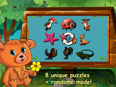 * 8 unique + random puzzles with hilariously animated animals!