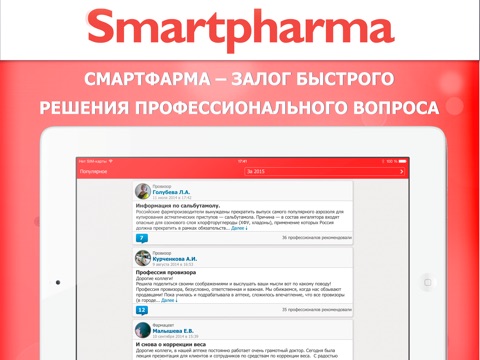 Можно читать публикации коллег прямо на работе, если появилась свободная минутка. Легко и оперативно можно посоветоваться с коллегами по рабочим вопросам. Да и вообще приятно ощущать себя частью фармацевтического сообщества.