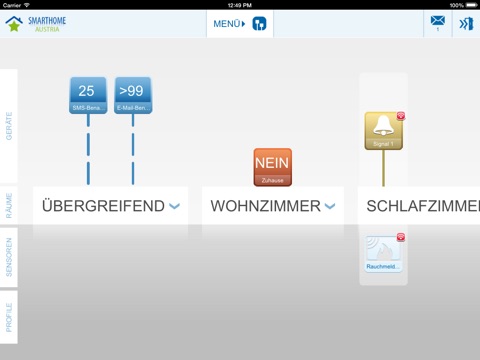 Die SmartHome Austria App bietet einen komfortablen Zugriff auf Ihr SmartHome Austria System. Bei der Erstanmeldung können die Login-Daten in den Einstellungen gespeichert werden und stehen dann für jeden weiteren Aufruf der SmartHome Austria-Umgebung zur Verfügung. Die App nutzt das mobile Portal von SmartHome Austria und ermöglicht beispielsweise die Steuerung der Geräte, die Schaltung von Profilen und die Ablesung eines Auslöser-Status.