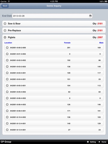 An application used in swine farming management. The application can maintain swine farming activities such breeding, fattening, farrowing, dead, purchase and transfer. It also include a non-live activity such as stock, feed usage, medicine usage.