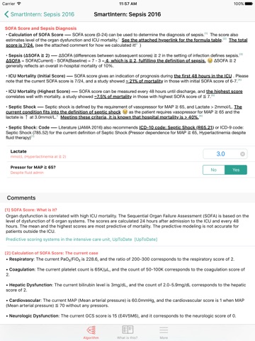 가장 정확하고 EBM을 최적으로 구현하는 앱, 그러면서도 편리성을 갖춘 어플리케이션으로써 스마트인턴: Sepsis는 임상의가 환자 곁에서 바로 새로운 기준에 따른 패혈증을 진단할 수 있도록 해 줍니다. 이해를 돕는 알고리즘과 사용하기 편한 인터페이스를 경험하세요.