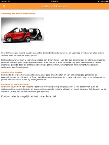 De Smarts die wij verhuren zijn als nieuw, zeer goed onderhouden en van alle gemakken en accessoires voorzien. De Smart is klein, zuinig en buitengewoon veilig. U kunt dus met een gerust hart uw Smart huren bij Smartjehuren.nl.