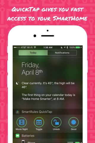 You can also quickly trigger rules with QuickTap. Add SmartRules to your Today Screen, and to your Apple Watch and quickly trigger a rule with a quick tap! Just add the "QuickTap" trigger to any rule, and it will show up in both of these convenient places.