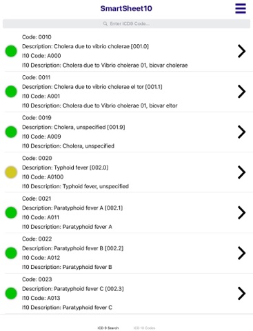 Need to find ICD-10 or ICD-9 codes in a hurry or on the go? The SmartSheet10™ app has you covered. SmartSheet10 Technology allows you to be confident in your quick ICD-9 to ICD-10 code selection since the code turns green when the most specific code is found. The SmartSheet10 app also alerts you to excludes criteria, as well as prompts you towards any additional unique 7th character that might be needed. Create a provider specific SmartSheet, or cheat sheet, using the app which will allow you to easily access the most commonly used diagnosis codes. Then through simple clicks you can easily find the most specific ICD-10 code within that diagnosis applicable to the patient in front of you. SmartSheet10 Technology is capable of being integrated into any EHR system and its patent-pending functionality uniquely focuses on your workflow. Always have the right code on hand by installing the SmartSheet10 app on your tablet or smartphone for quick and easy access anywhere, anytime.